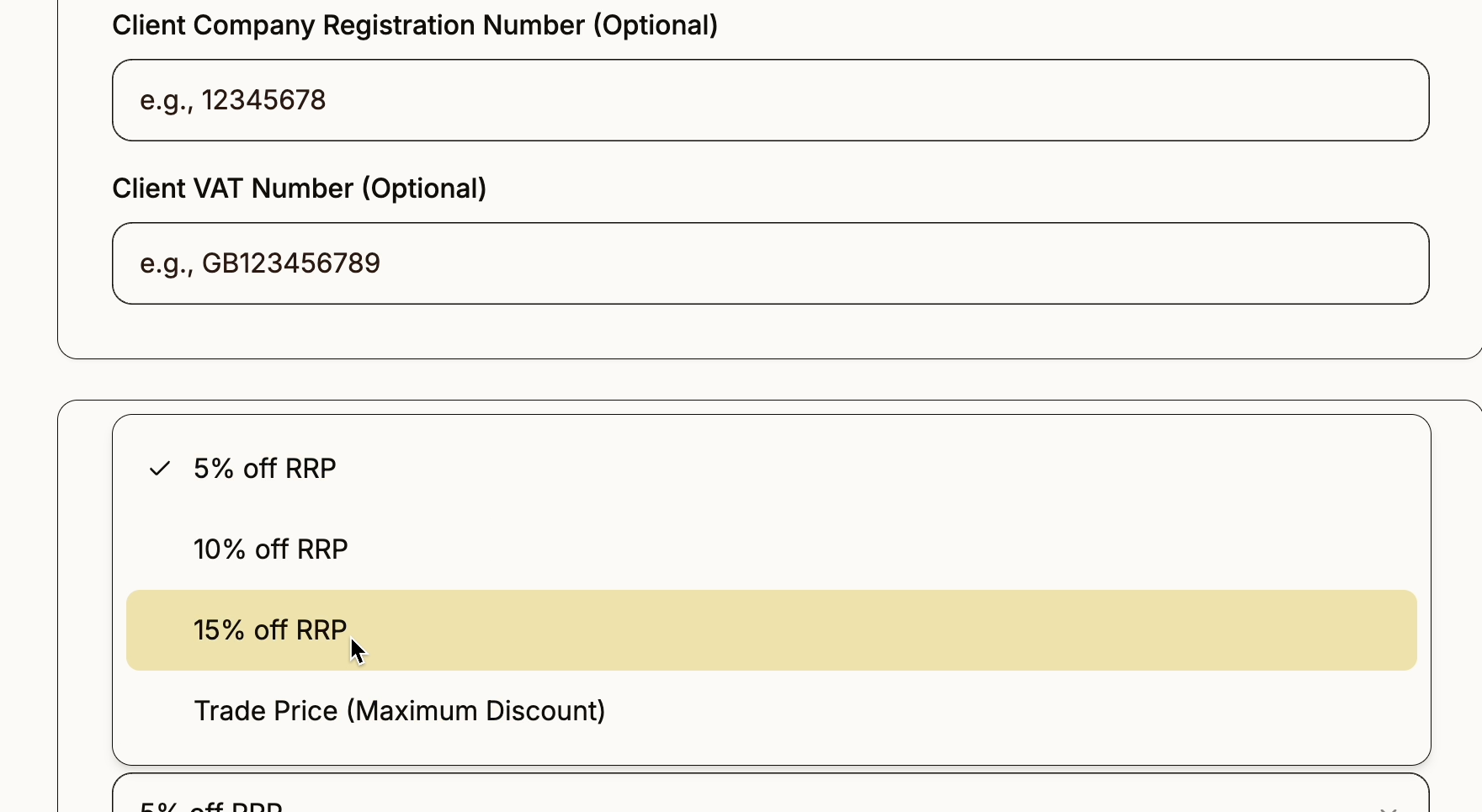 Set your markup in seconds. Choose to pass on trade discounts to clients, charge RRP, or set custom pricing. Procurist automatically calculates your profit on every line item.